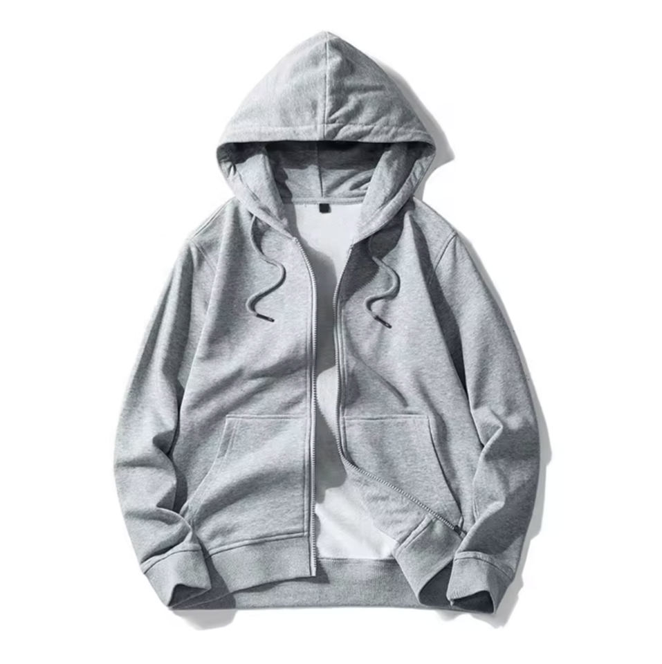 Men's Lightweight Cotton Full-Zip Loose Fit Winter Hoodie 3D Embroidery Custom Printing Logo Puff Technics US Sizes Sweatshirt