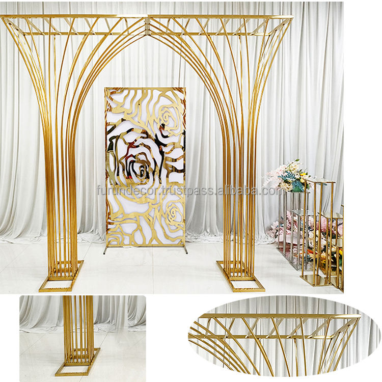 Furun Luxury Stainless Steel Wedding Arch with Background Bracket for Wedding Events and Party Stage Decoration