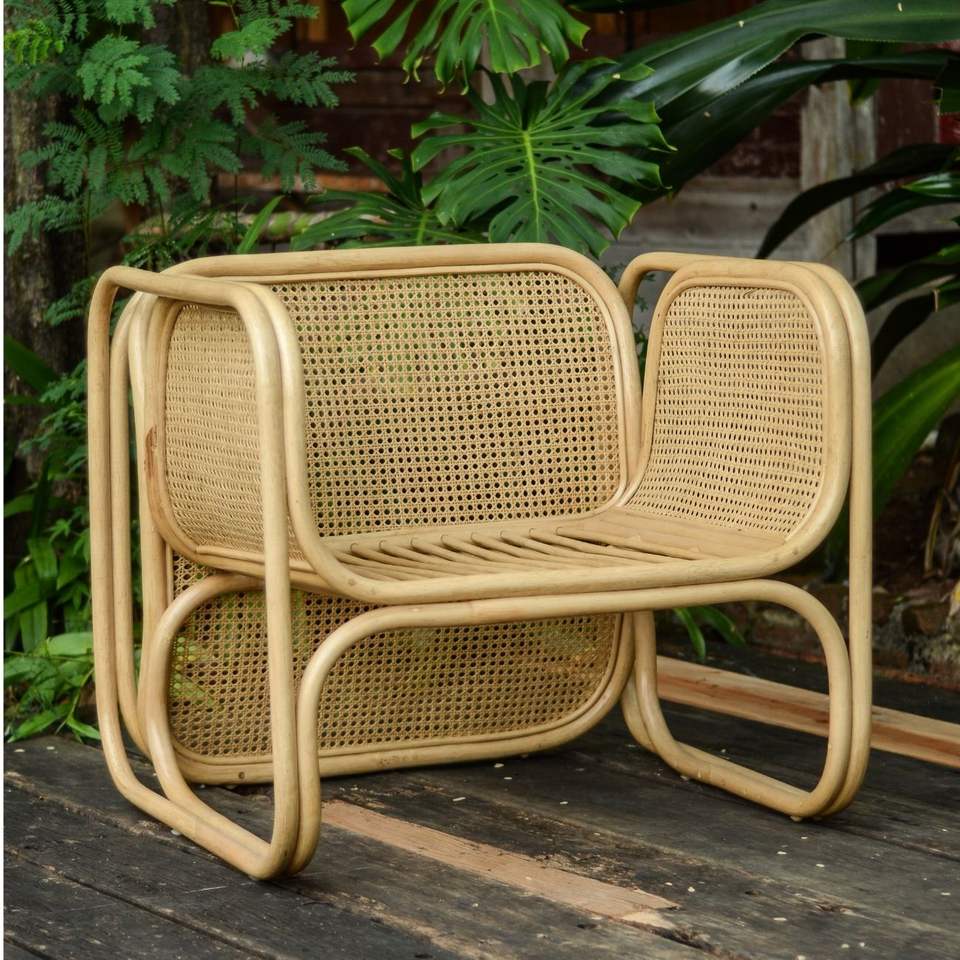 Futuristic Wooden Seat Hotel Chair Made of Rattan Cane and Rattan Webbing Weaving with Arms Originally From Indonesia