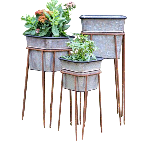 galvanized planter Set of 3 garden Rectangular plant with Design balcony decorative metal Floor pot for Flower