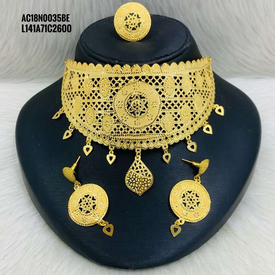 Classic Gold Plated Box Chain Choker Necklace with Floral Design Brass Jewelry for Party & Wedding