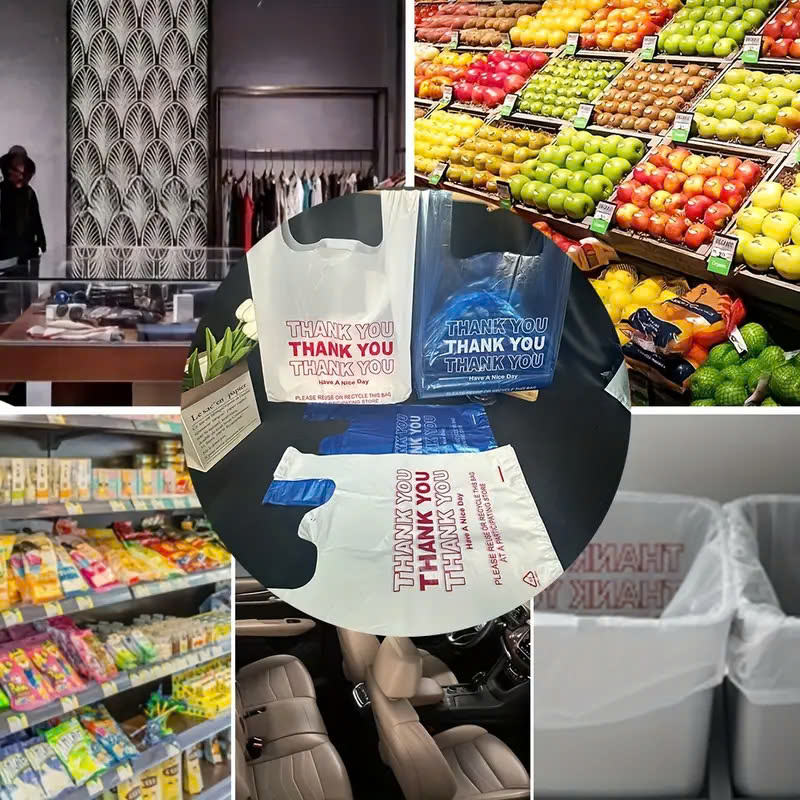 Thank You Printed T Shirt Bag Recycled Plastic Shopping Bags for Food and Vegetables Featuring Logo for Grocery Shopping