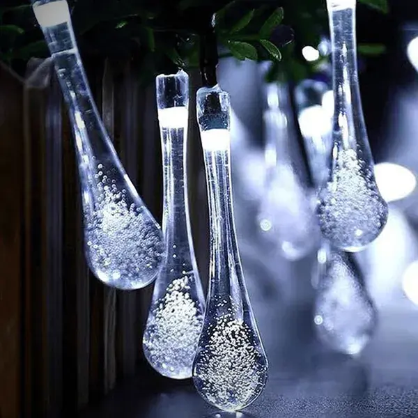 guirnalda de luces solares en forma de gota de lluvia, 2m+10m, luz blanco fro; ideal para decoracin exterior y ambientacin