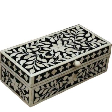 Handmade 2025 Natural Bone Inlay Jewelry Box Rectangle Laser Printed Craft Storage Box for Gift Giving