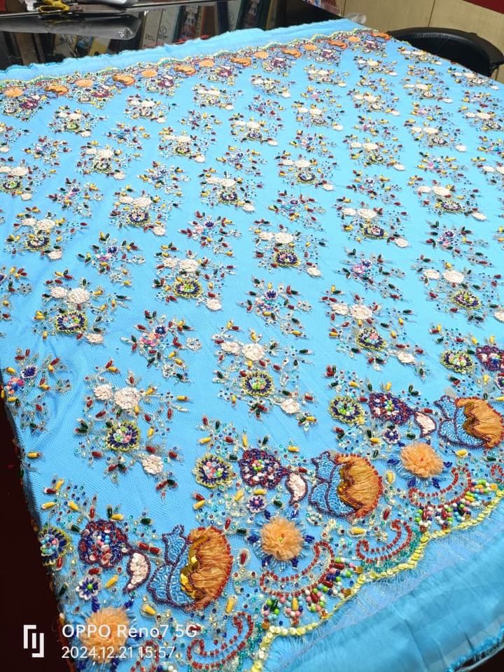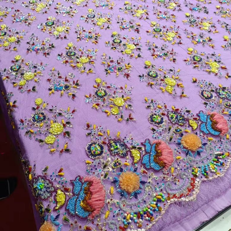 hand beaded Embroidery Nonwoven Waterproof Lace Fabric Sliver Purple Wedding Shoes Accessories