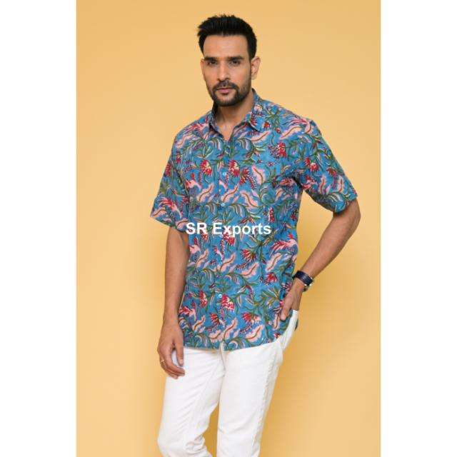 hand block printed shirt cotton shirts for men summer beach wear sanganeri jaipuri print cotton voile casual regular size shirts