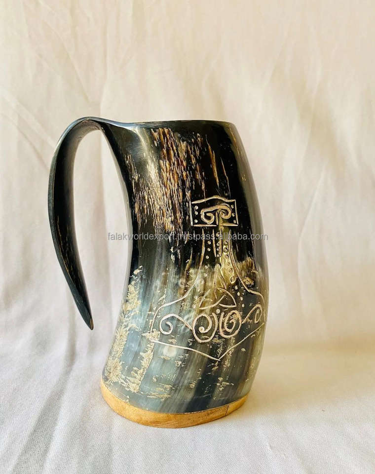 Handmade Natural Horn Beer Mug Viking-Style Drinking Tankard Viking Drinking Horn Beer Mugs Premium Quality Viking Drinking Horn