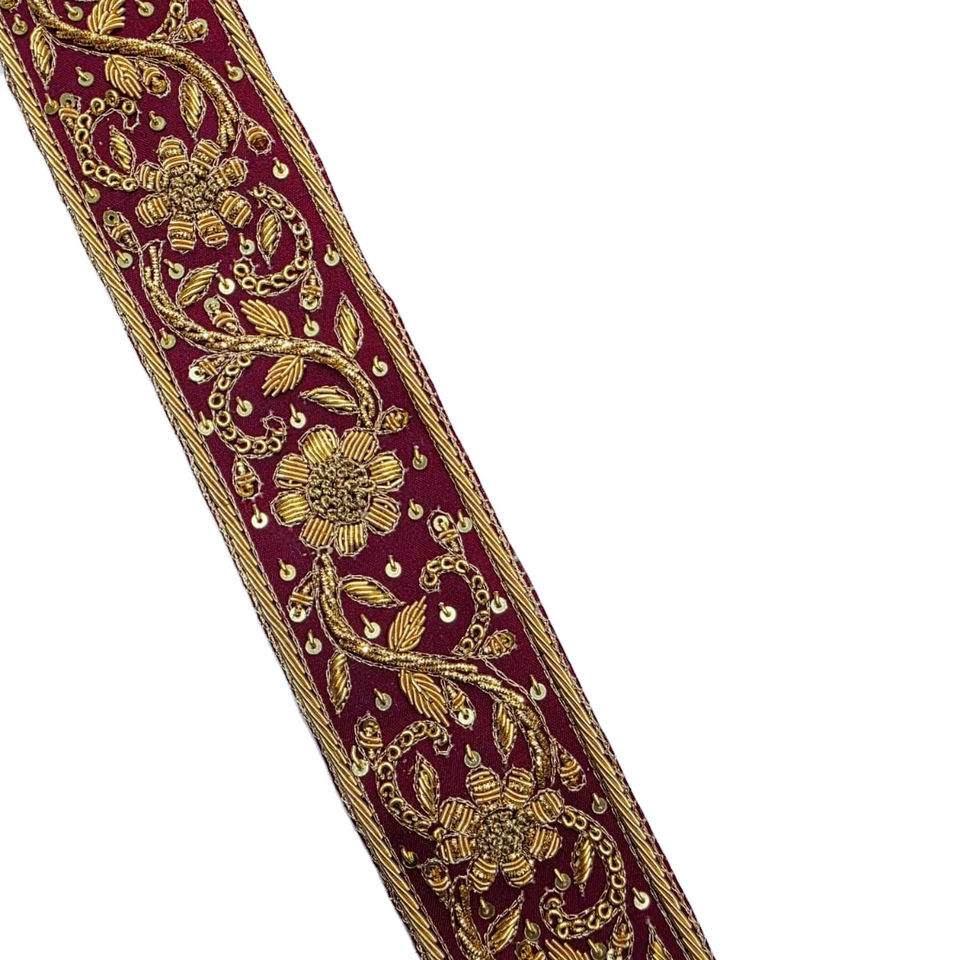 Handmade Embroidery Dabka Lace Trim Border Indian Ethnic Lace 1 Piece Custom Color Wholesale