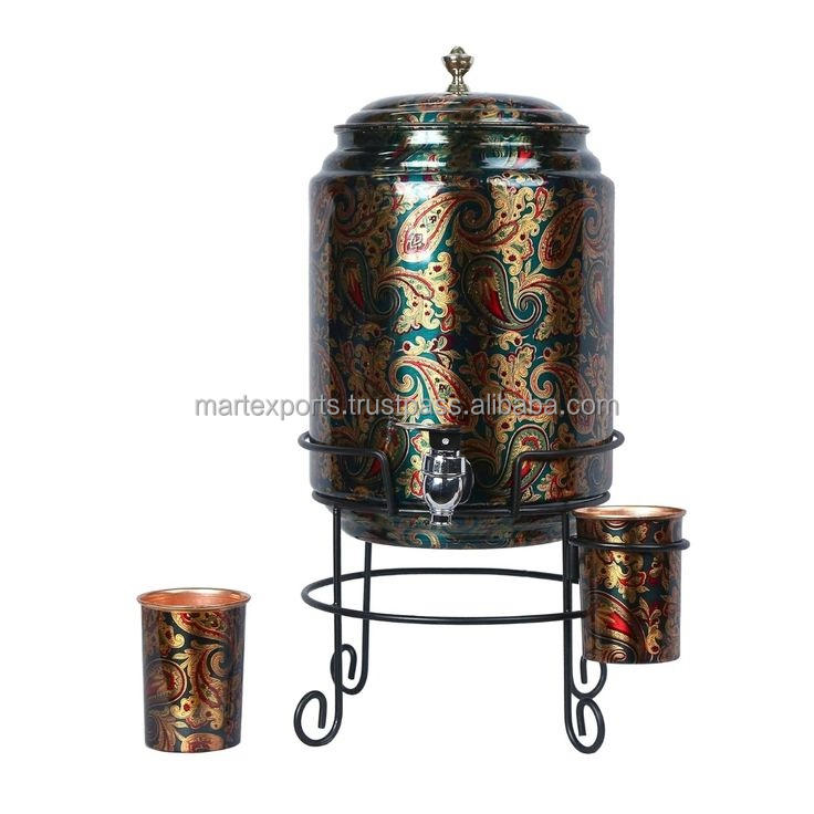 Handcrafted Pure Copper Water Dispenser Stand Lid Metal Handle Antique Hammered Finish Customizable Size Printing Eco-friendly