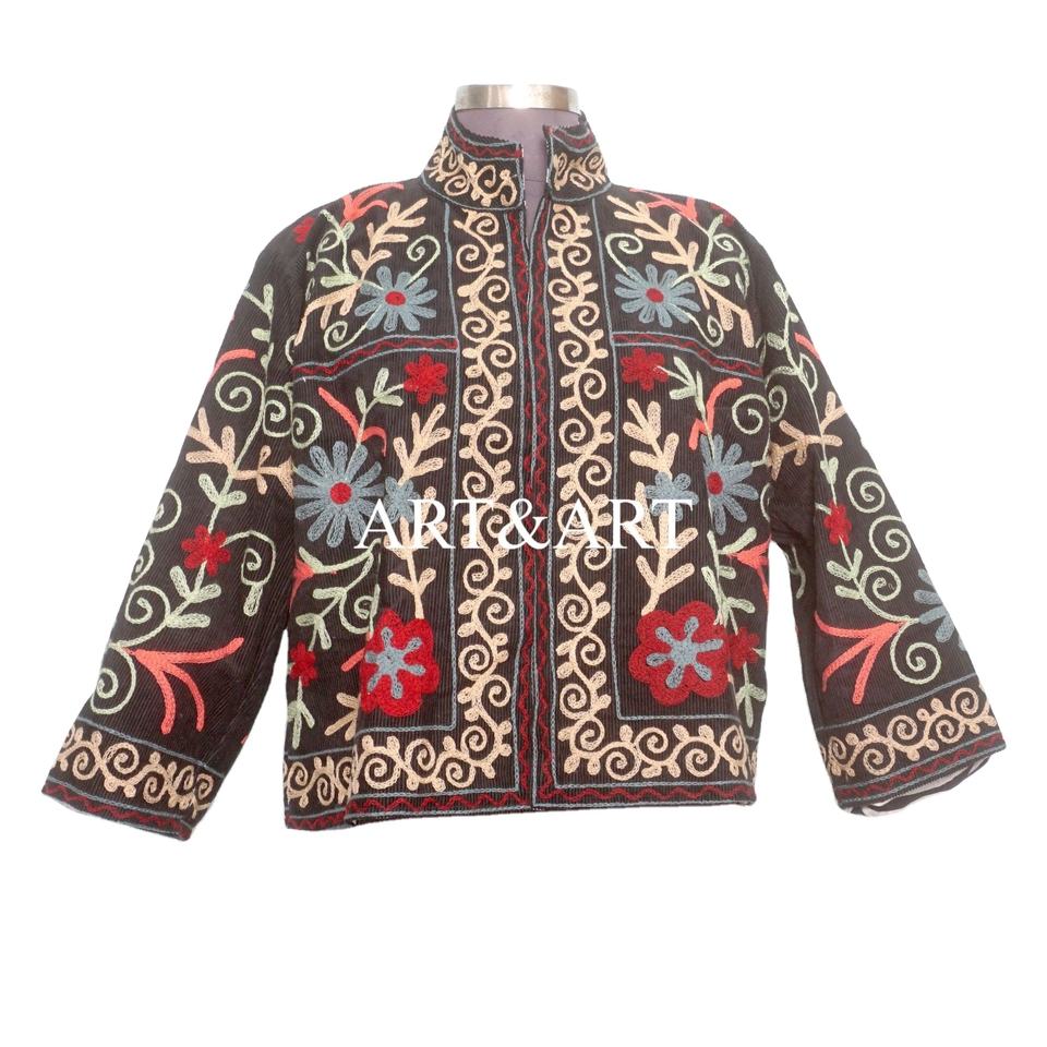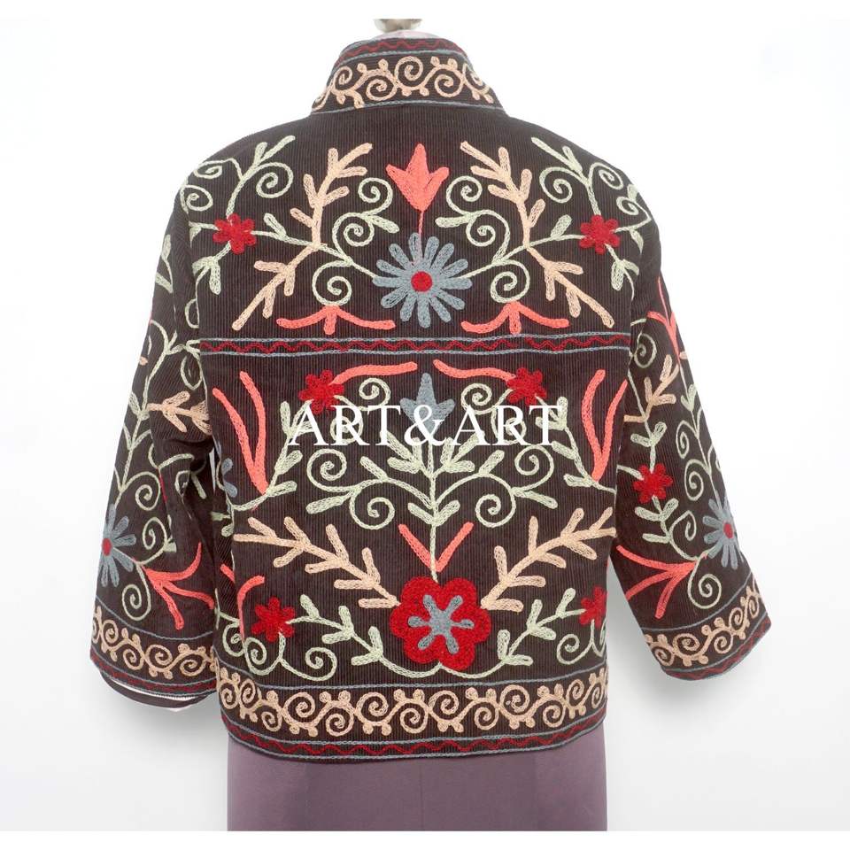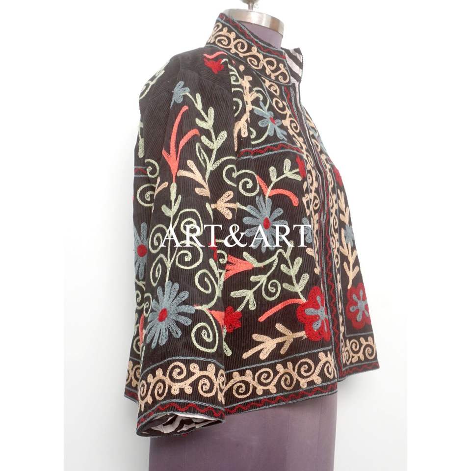 Handmade Unique Hand Embroidered 100% Cotton Cotrise Jacket for Women Full Sleeves Mandarin Collar Breathable Eco-Friendly