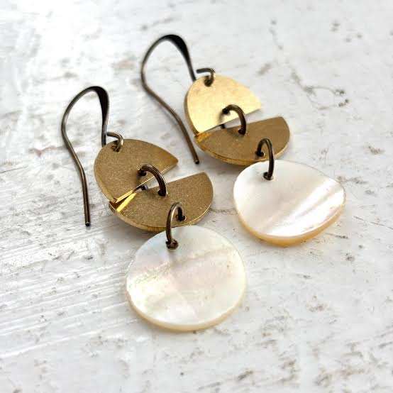 handmade brass earring with mother of pearl sea shell bead new design american style