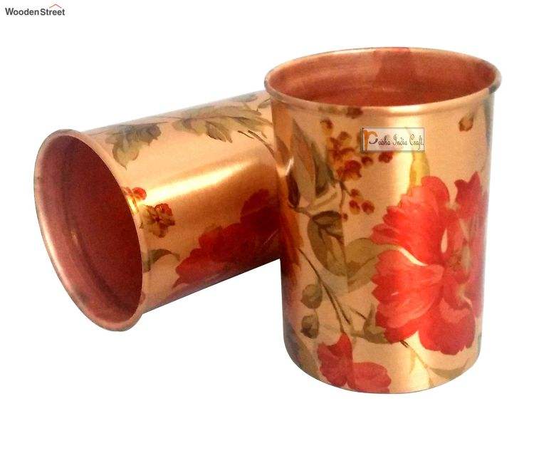 handmade copper printed glass for kitchen and dining use traditional indian copper printed glass for daily drinking low price