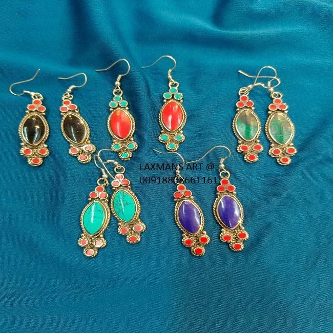 Handmade Stone Carved Earrings Handmade Earrings Designer Brass Fashion Earrings Stone Fashion Earrings Tibetan Design Earrings