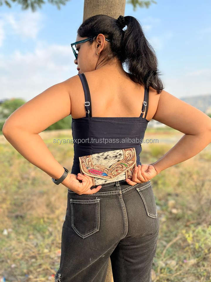 Handmade Western Tooled Clutch Hand Tolled Vintage Style Antique Design Cowhide Hair on Fur Wallet with Card Cash Slots