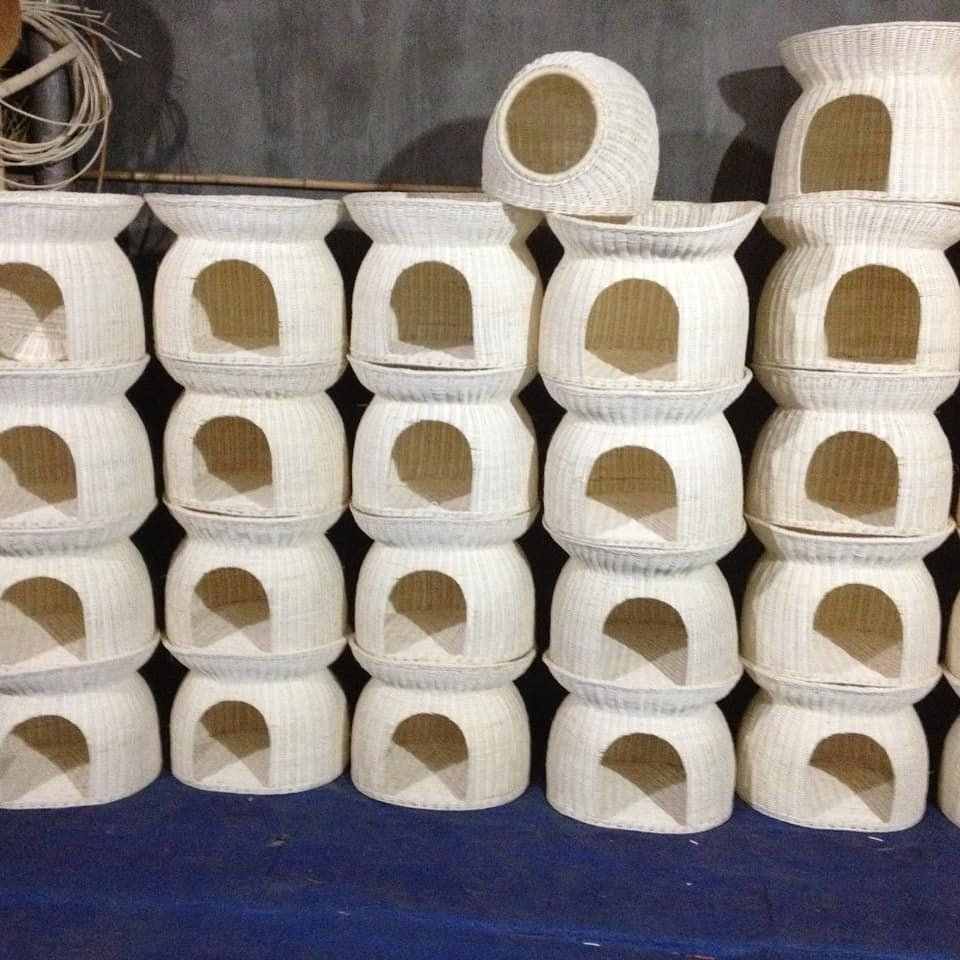 Handwoven Oval Waterproof Cooling pp Rattan Wicker Cat Dog Bed Pet House 99GD