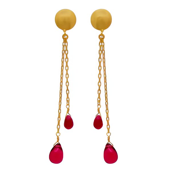 925 Sterling Silver Gold Plated Ruby Tourmaline Quartz Earring with Long Hanging Chain Fashionable Wedding Party Accessory Gift