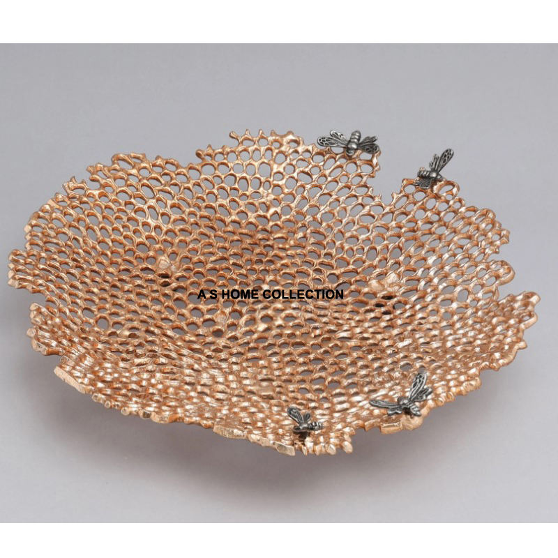 Heart Design Rectangle Shape Silver Finishing Decorative Metal Made Platter Serving Fruits Bowl