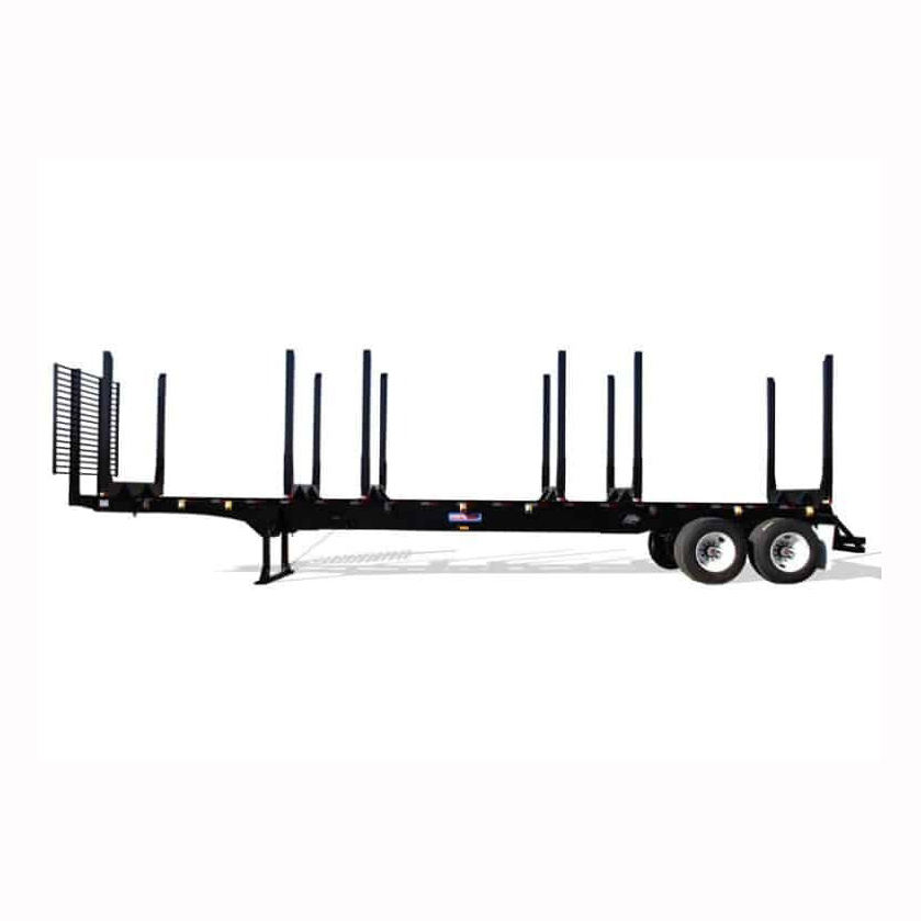 heavy duty log trailer with hydraulic loader for forestry timber hauling and wood transport on rough terrain