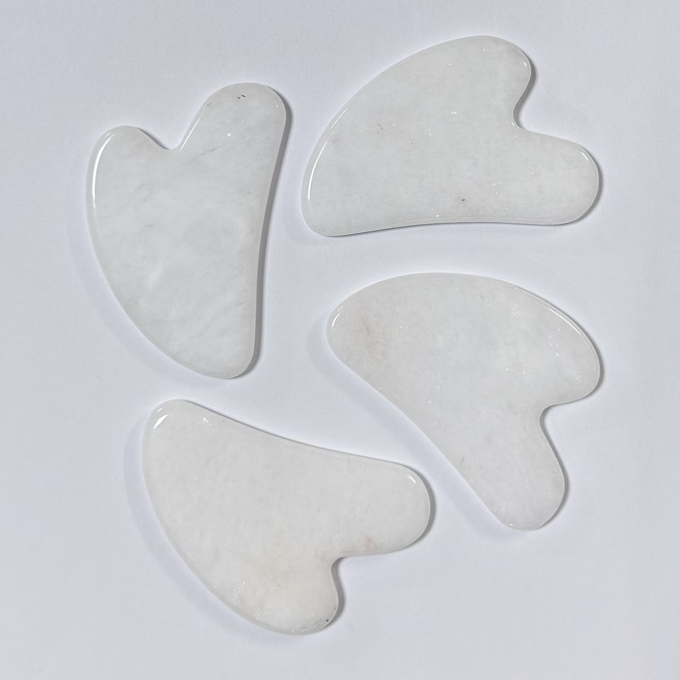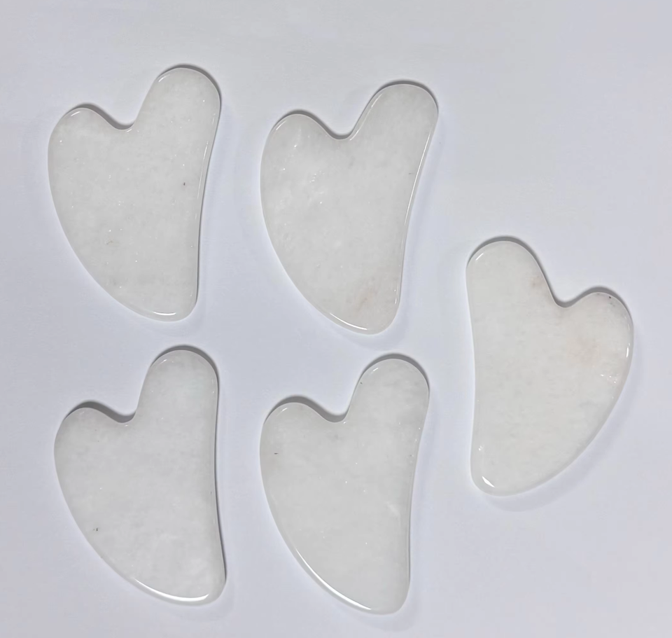 herramientas de cuidado de la piel de piedra natural de gua sha de color blanco