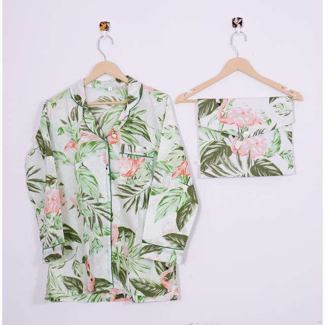high quality 100%cotton floral printed pajama set with turndown collar and pockets nightdress 2 piece set sleepwear for women's