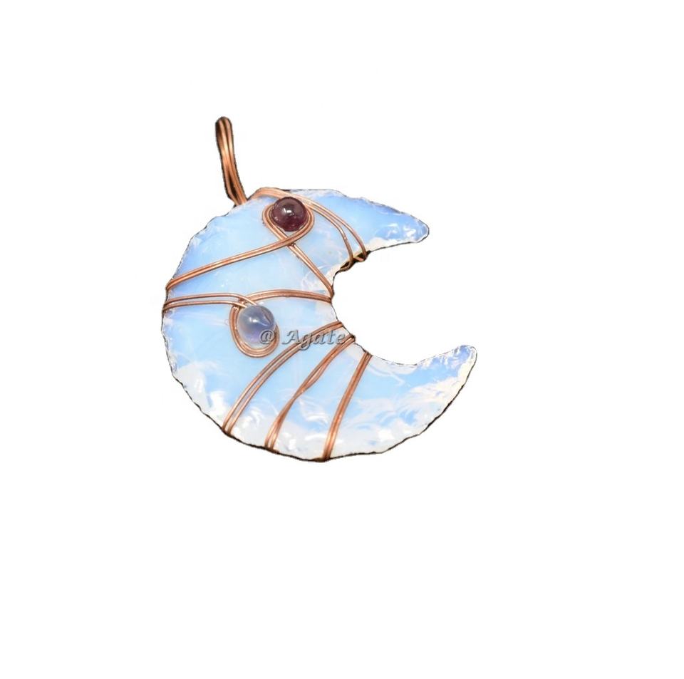 High Quality Hand Craft Natural Mineral Gemstones Crystal Healing Stones Opal Moon Iolite Garnet Wire Wrap Pendant