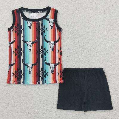 high quality Little Boy Boutique blue boots cowboy summer outfits wholesale toddler boy RTS child clothing set with pocket
