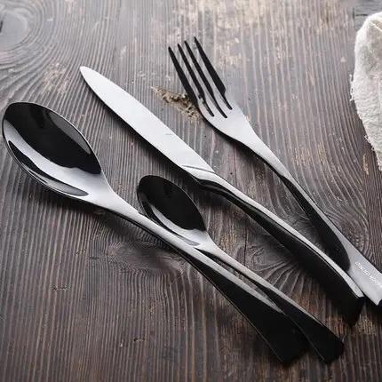 high quality Modern reusable knife spoon fork silver cutlery 4 pcs shiny black beautiful handle stainless steel cutlery set