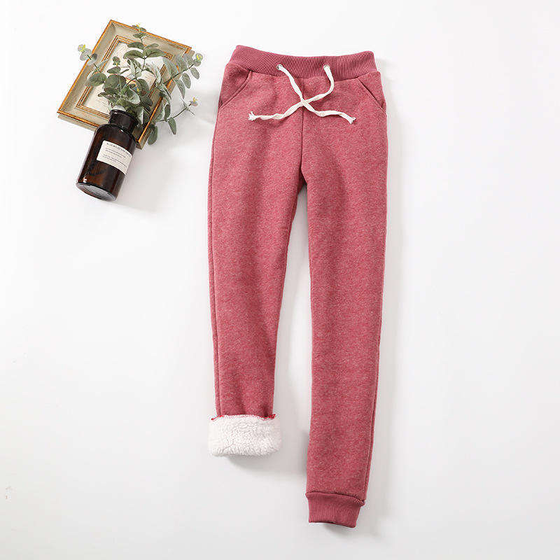 high quality New Version Lamb Velvet Solid Color Warm Casual Pants Ladies Plus Velvet Thickened Women Winter Pants