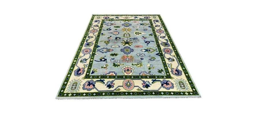 pattern:Abstract Green Oushak Rugs Hand-Knotted Wool