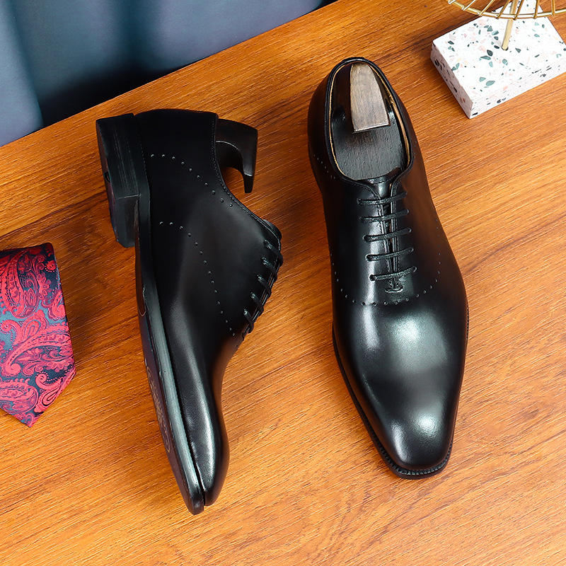 high quality dress leather shoe factory direct-sale men's pointed-toe English-style engraved Handmade business Oxford shoes