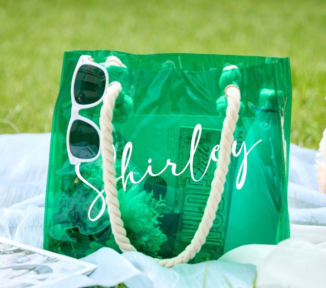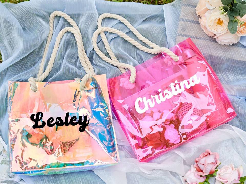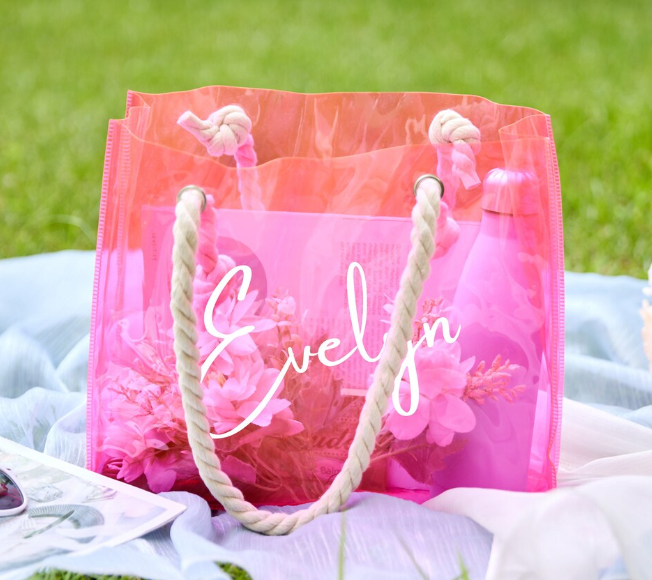 High Quality Eco-Friendly Promotional Fashionable Women's Large Capacity Waterproof PVC Tote Bag Long Rope Custom Colorful Candy