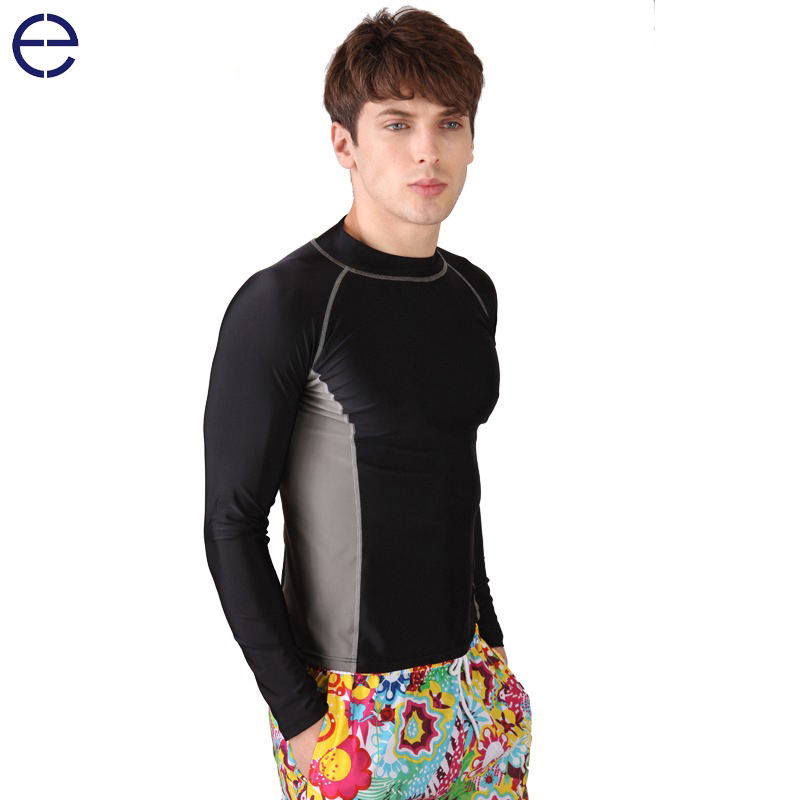 High Quality Men's UPF50+ Long Sleeve Rashguard Compression Spandex Swim T-Shirt for Gym & MMA Custom Logo for Adults