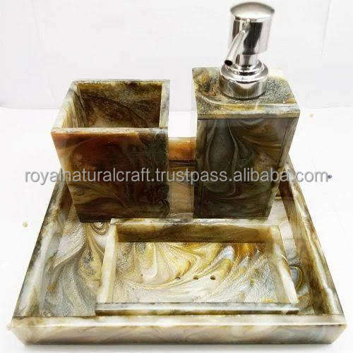 High Quality Resin Bathroom Set Bath Set with Liquid Soap Dispenser l Toothbrush Holder l Tumbler Holder l Soap Dish Set of 4