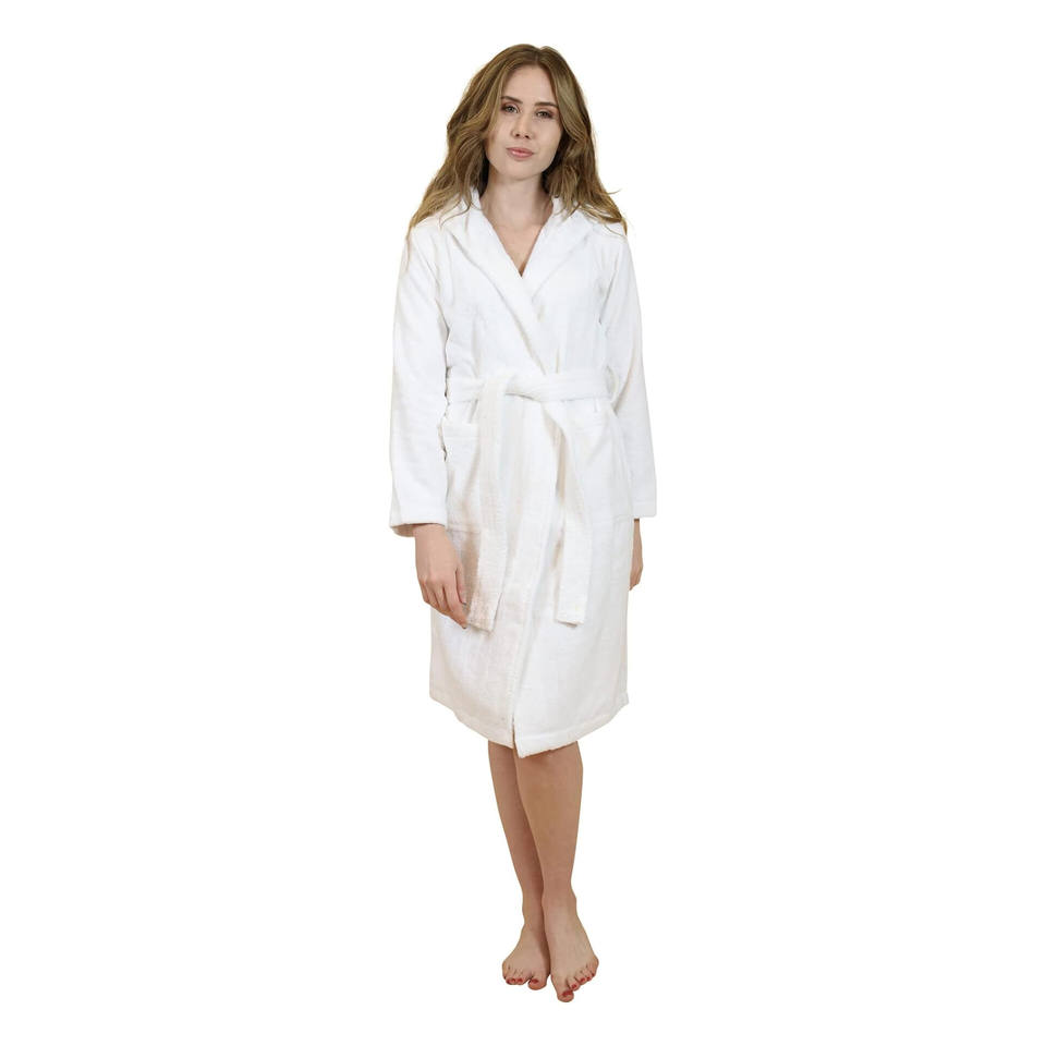 Premium White Plush Bath Robe for Women High Quality Logo Sleepwear Knee Length for Summer and Spring-Made in Karur
