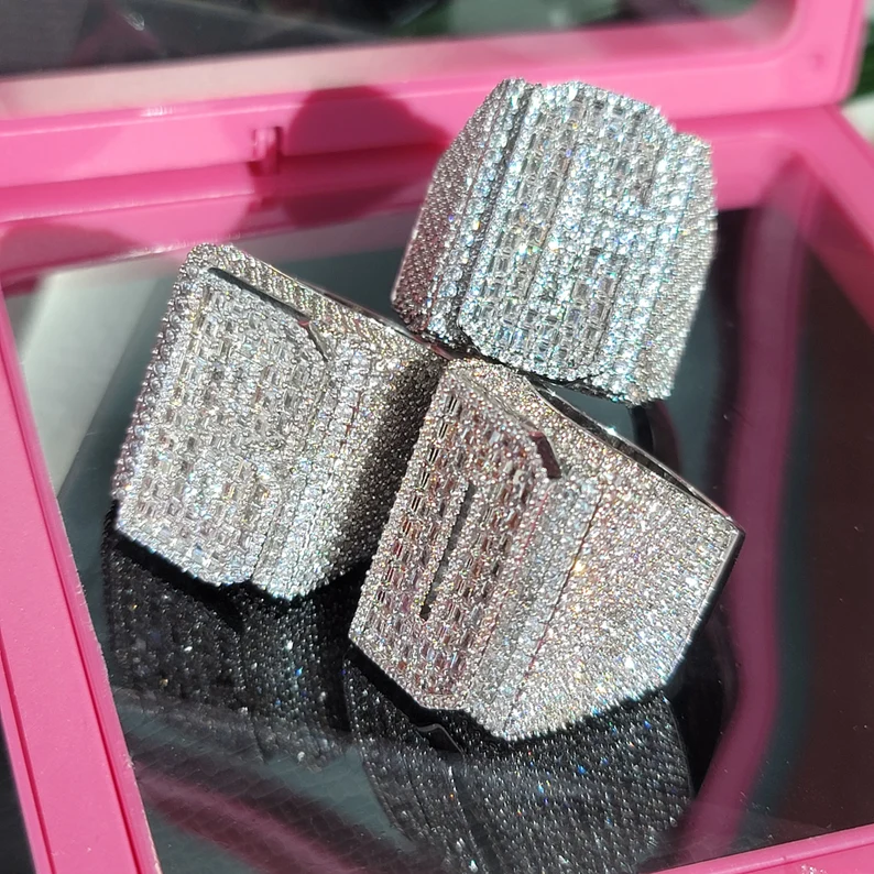 hip hop jewellery moissanite iced out silver square ring baguette stone wide band luxury men statement bling fashion