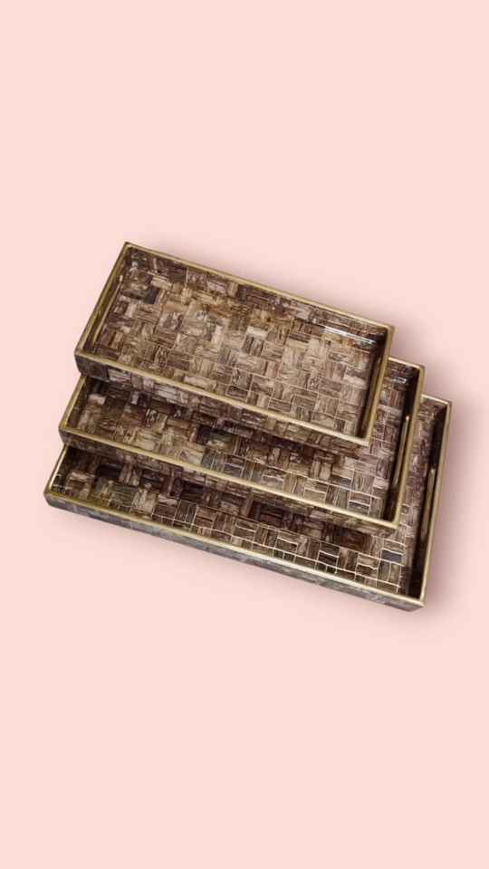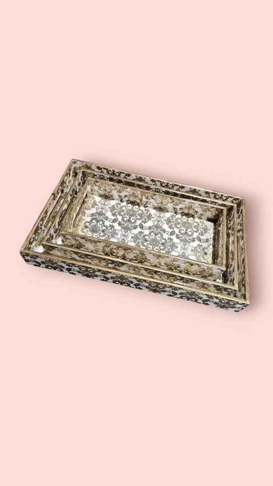 Home Decor Wood Printed Handicraft Serving Tray Eco-friendly Customized Size Plant Pattern Art Deco Multi-piece Package