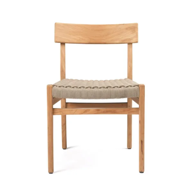 Hot sale Solid teak dining chair handwoven rope seat durable timeless design living room