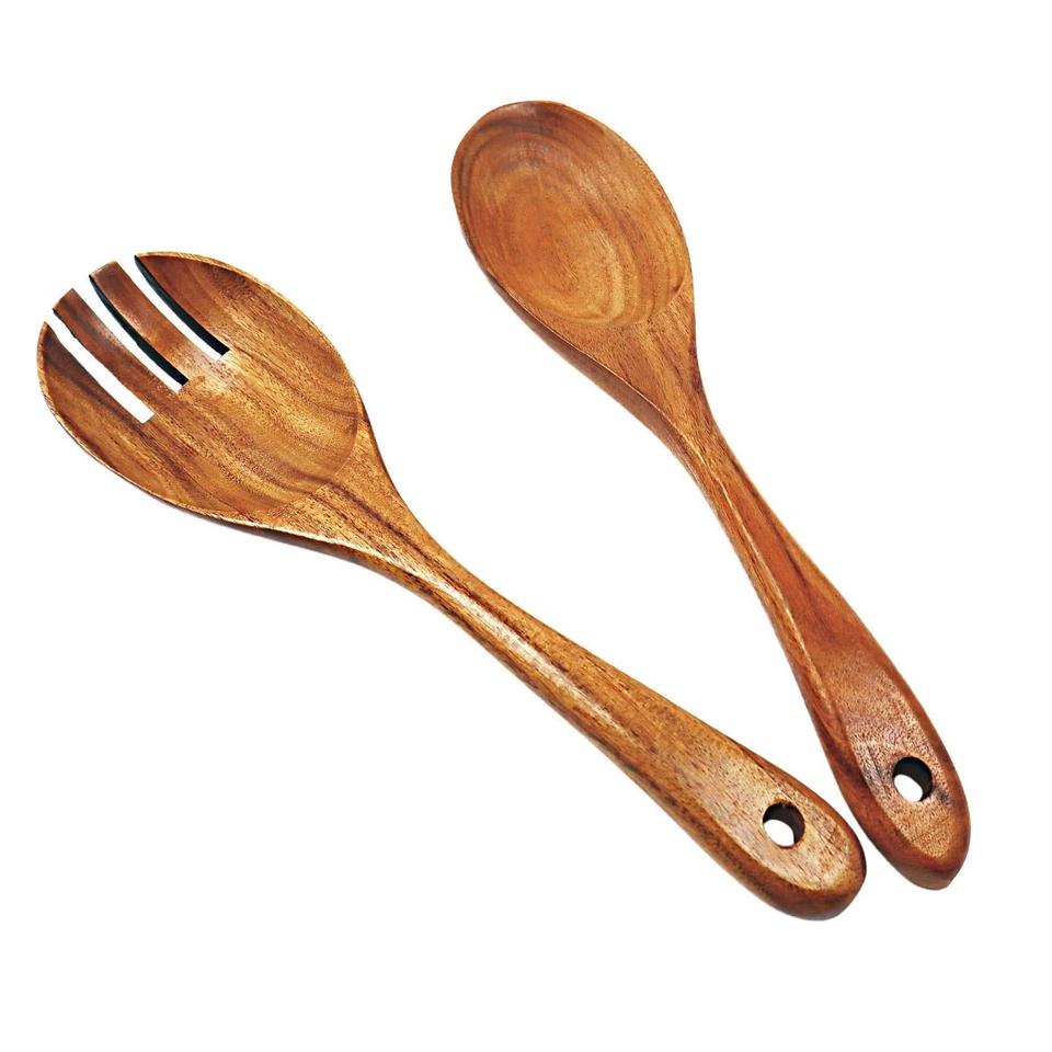 hot sale wooden salad server Enamel Polished Mango Wood Salad Servers With Serving spoon Matching Servers