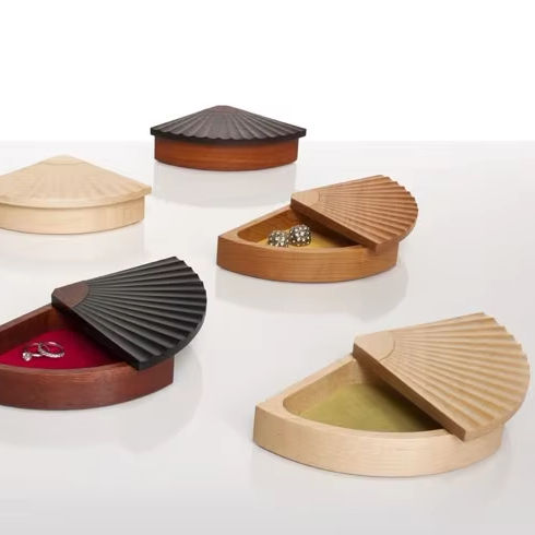hot selling Acacia Wood Fan Style Ring Boxes Customizable Engagement Ring Holders Mango Wood Proposal latest Jewelry Boxes
