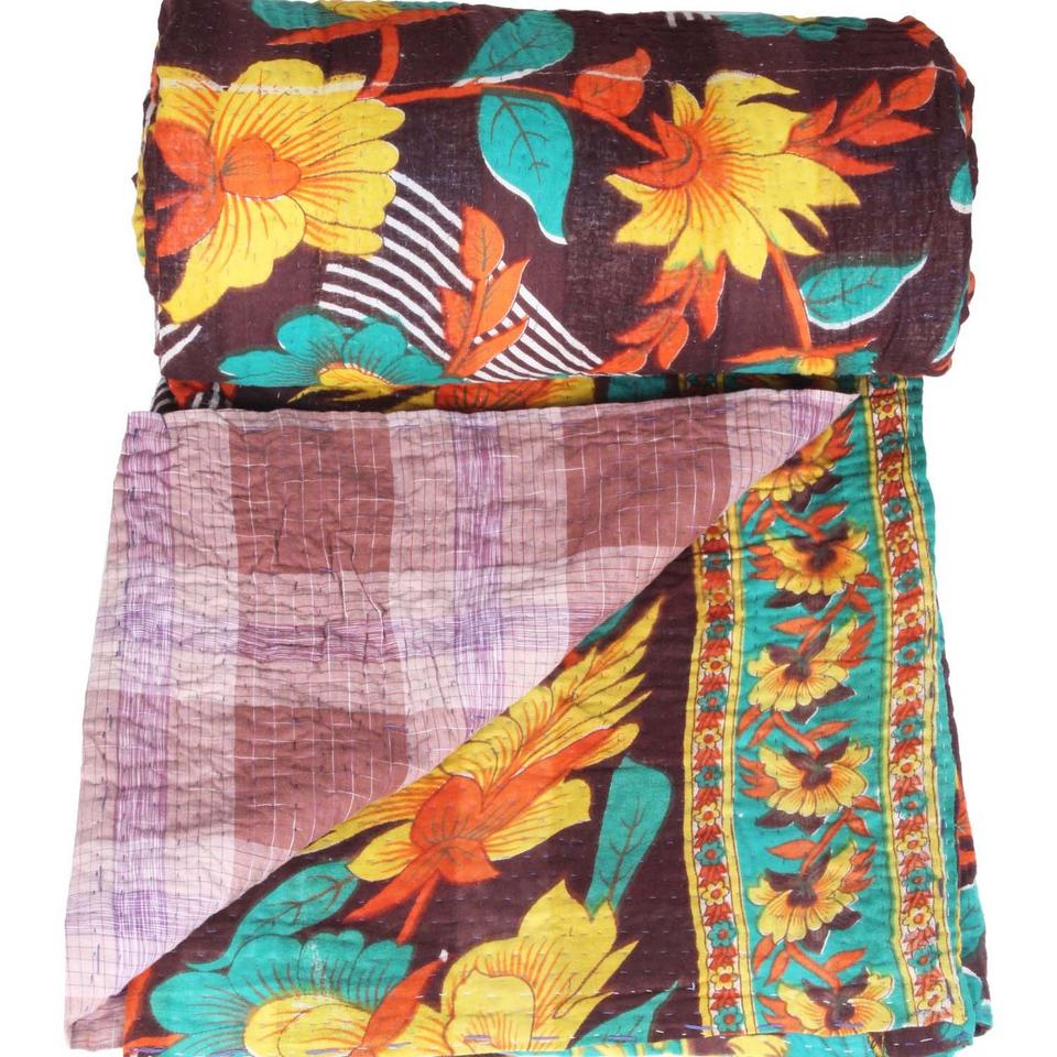 Hot Selling Indian Reversible Hand-Stitched Heavy Throw Blanket Queen Size Handmade Patchwork with Cotton Filling for Hotels