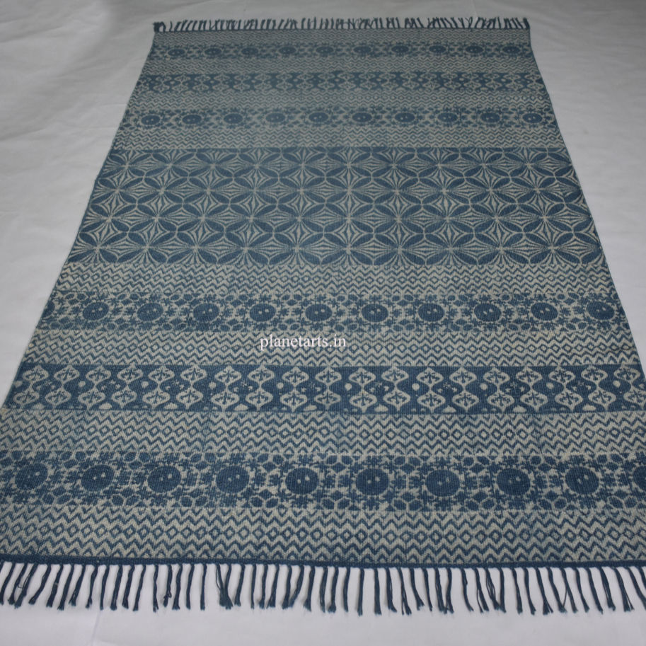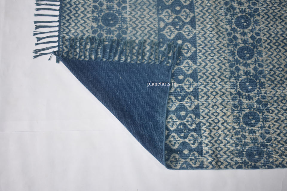 Hot Selling Customizable Soft Home Decor Oriental Indigo Print Cotton Silk Rug for Living Room Prayer Space Hot Area Rugs Sets