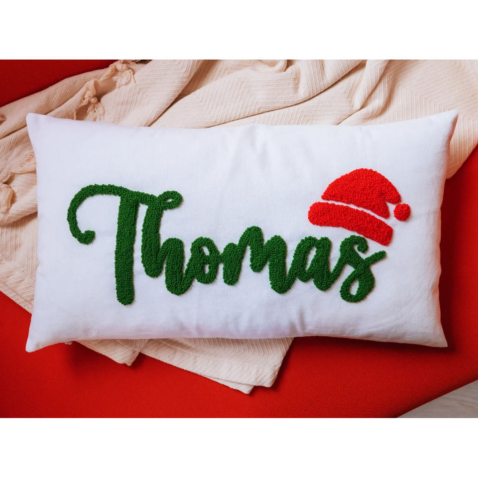 Hot Selling Personalized Christmas Name Printed 100% Cotton Customizable Floral Character Lumbar Pillow Baby First Christmas
