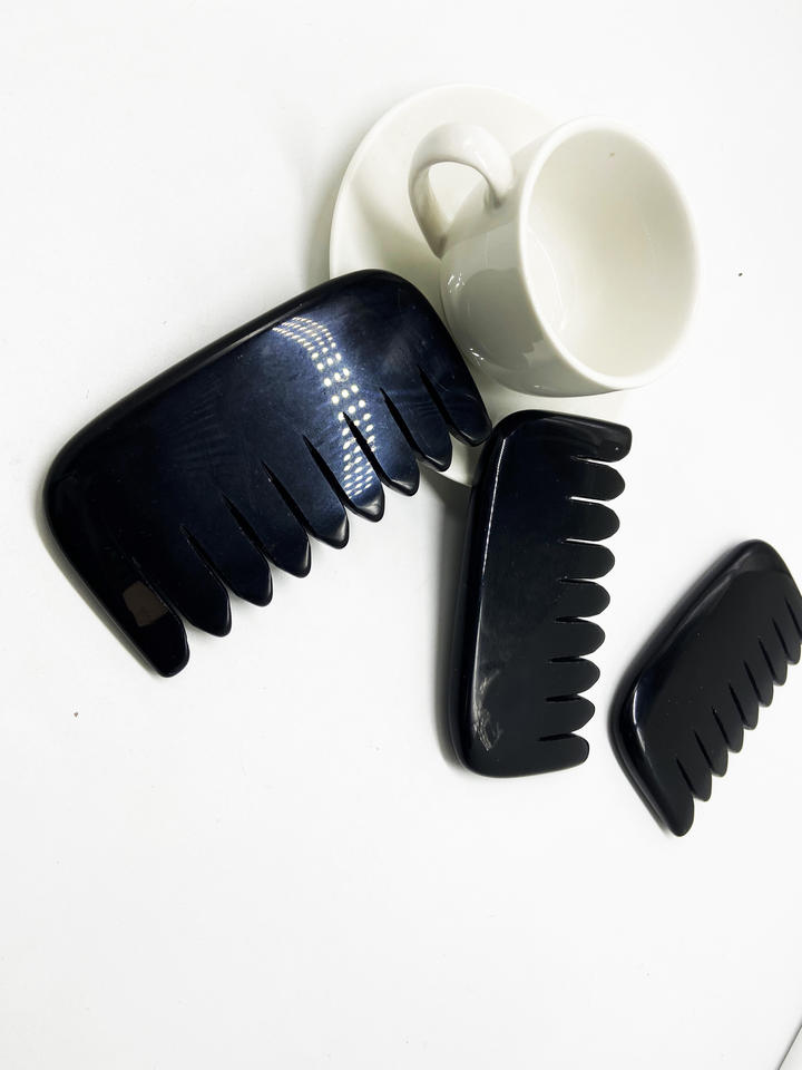 Hot Selling Hair Comb Head Natural Guasha Face Neck Lifting Massage Tool Head Scalp Therapy Black Gua Sha Jade Hair Comb