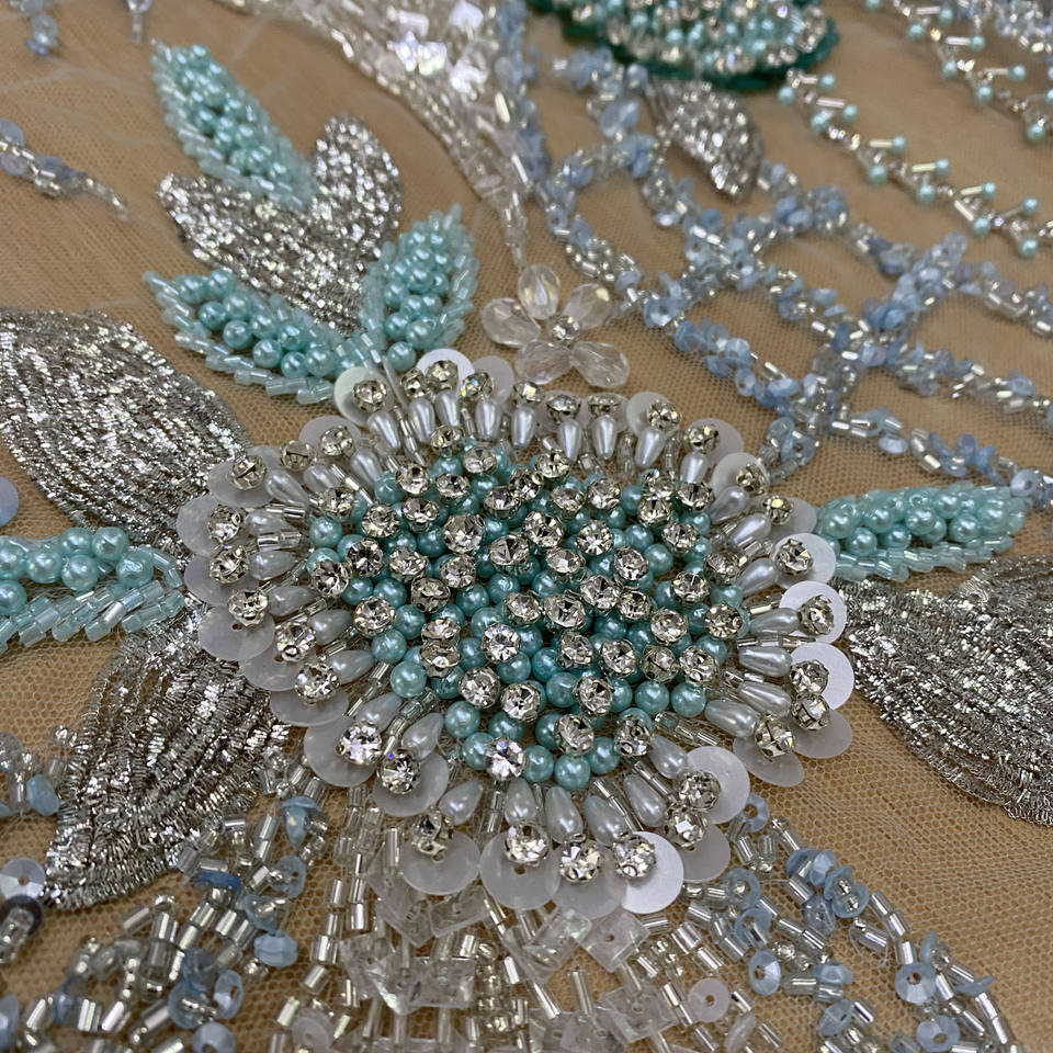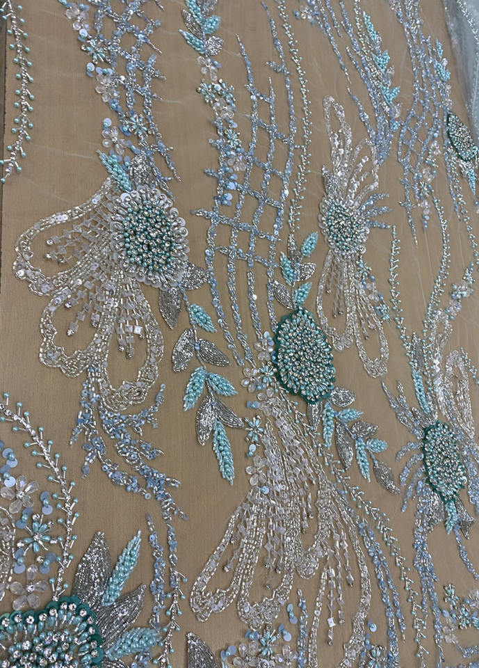Hot Selling Product Light Green Lace Beaded Wedding Bridal Fabric Crystal Sequins Fabric Supplier From India