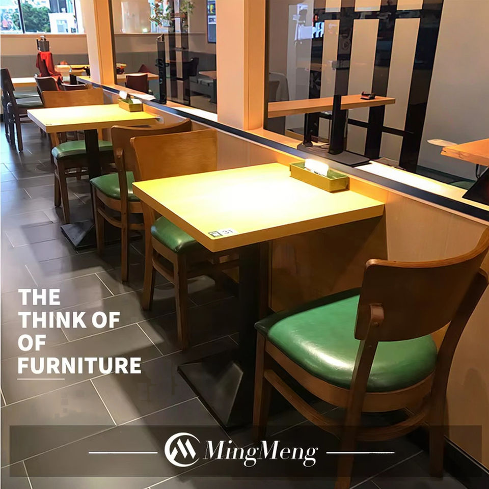 hotel restaurant cafe HPL laminate dining table leather cushion chair marble veneer top quality bistro dining table set