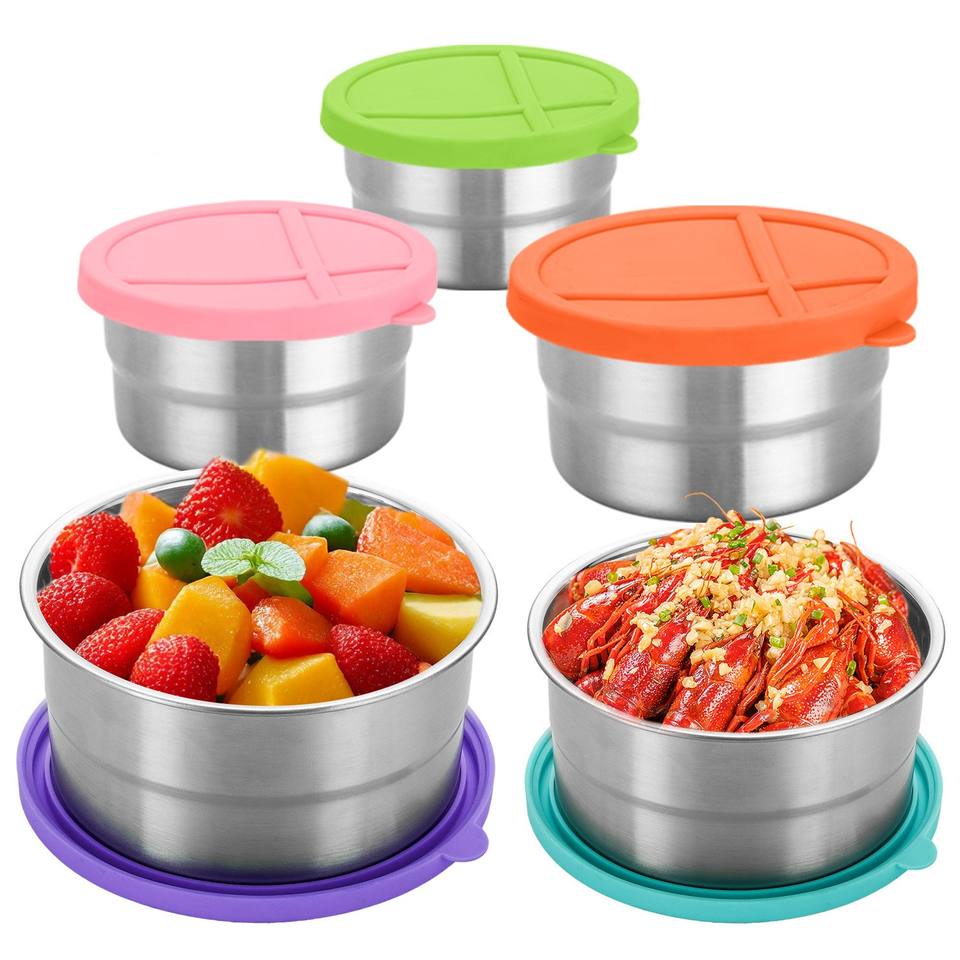 household kitchen food container 304 stainless steel round food storage container with lid outdoor lunch box children snack box