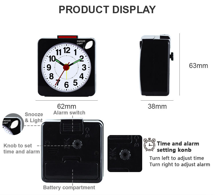 IMSH BB06202 Quartz Analog Clocks Travel Alarm Clocks Table Wecker Despertador Bedside Desk Custom square Travel Alarm Clock