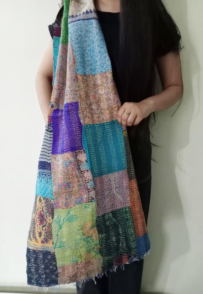 indian handmade silk scarves reversible stole vintage kantha muffler assorted Patchwork color scarves silk scarf kantha stole