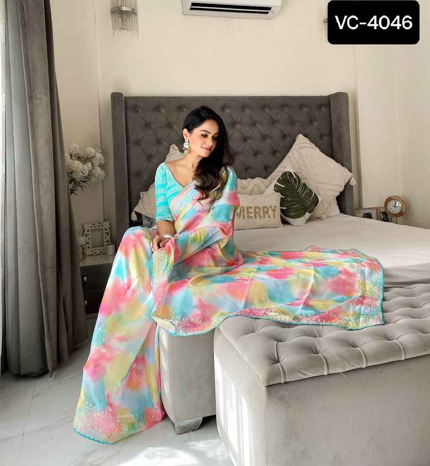 Type:Party Wear Sequence Embroidery Saree