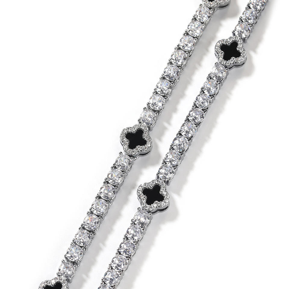 ins wind four-leaf clover diamond-encrusted tennis chain necklace women's exquisite high-end collarbone chain accessories